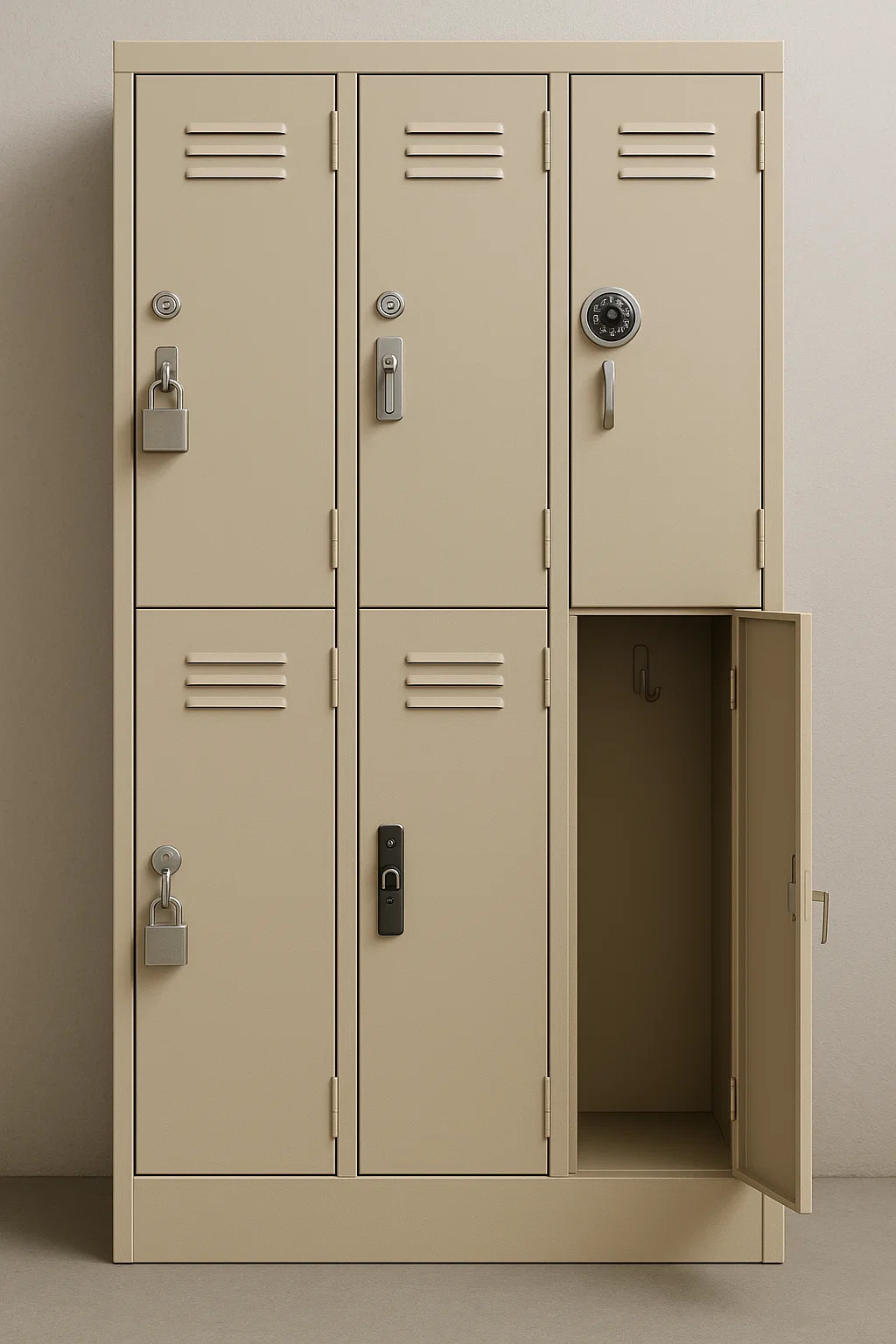 UM armário é um compartimento de armazenamento fechado e seguro, projetado para uso pessoal temporário. Aqui está uma análise de suas principais características e funções: