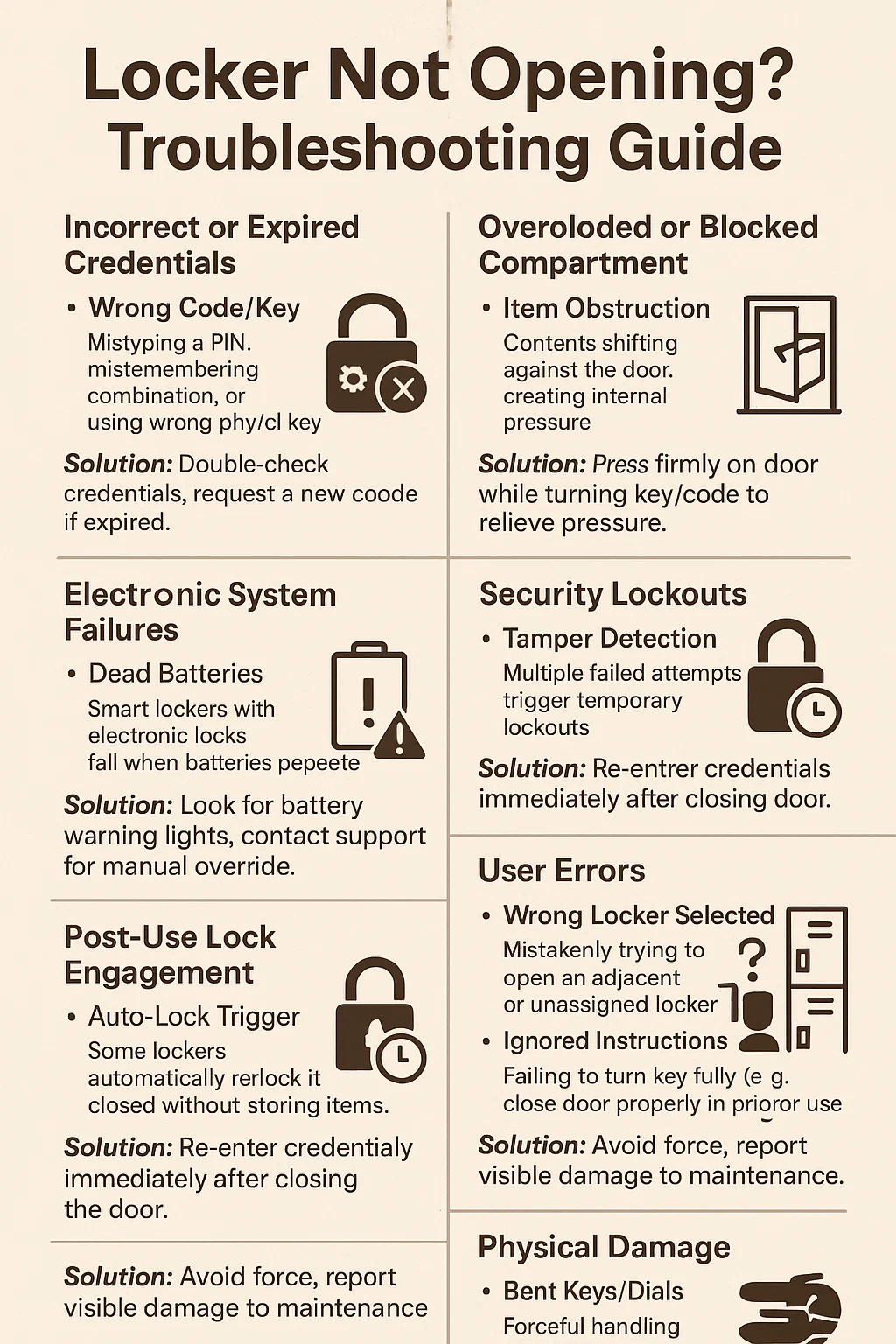 Aqui está uma análise dos motivos comuns pelos quais um armário pode não abrir, juntamente com etapas práticas de solução de problemas:
